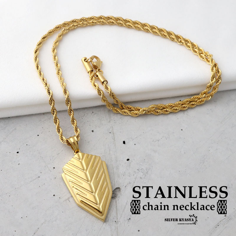 - ステンレス シールドネックレス 盾 ロープチェーン 金色 ゴールド 金属アレルギー