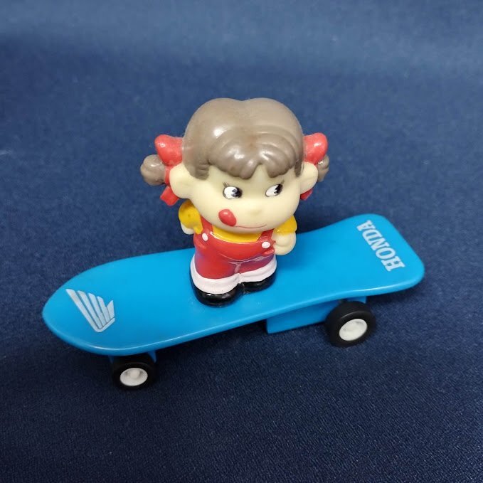 - 昭和レトロ ペコちゃん スケボー ホンダ HONDA コラボ不二家 ソフビフィギュア人形ぺこちゃん 当時物 おまけ食玩 昔 古いおもちゃ 玩具 送