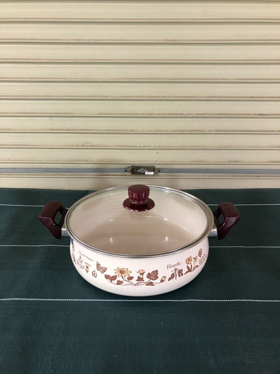 - ★両手鍋 昭和レトロ 花柄 キッチン 調理器具 中古★tano