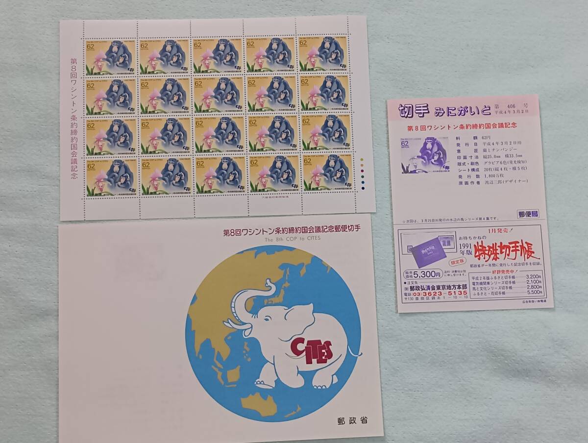 第8回ワシントン条約締約国会議記念 1992 切手シート1枚と解説書と切手みにがいど