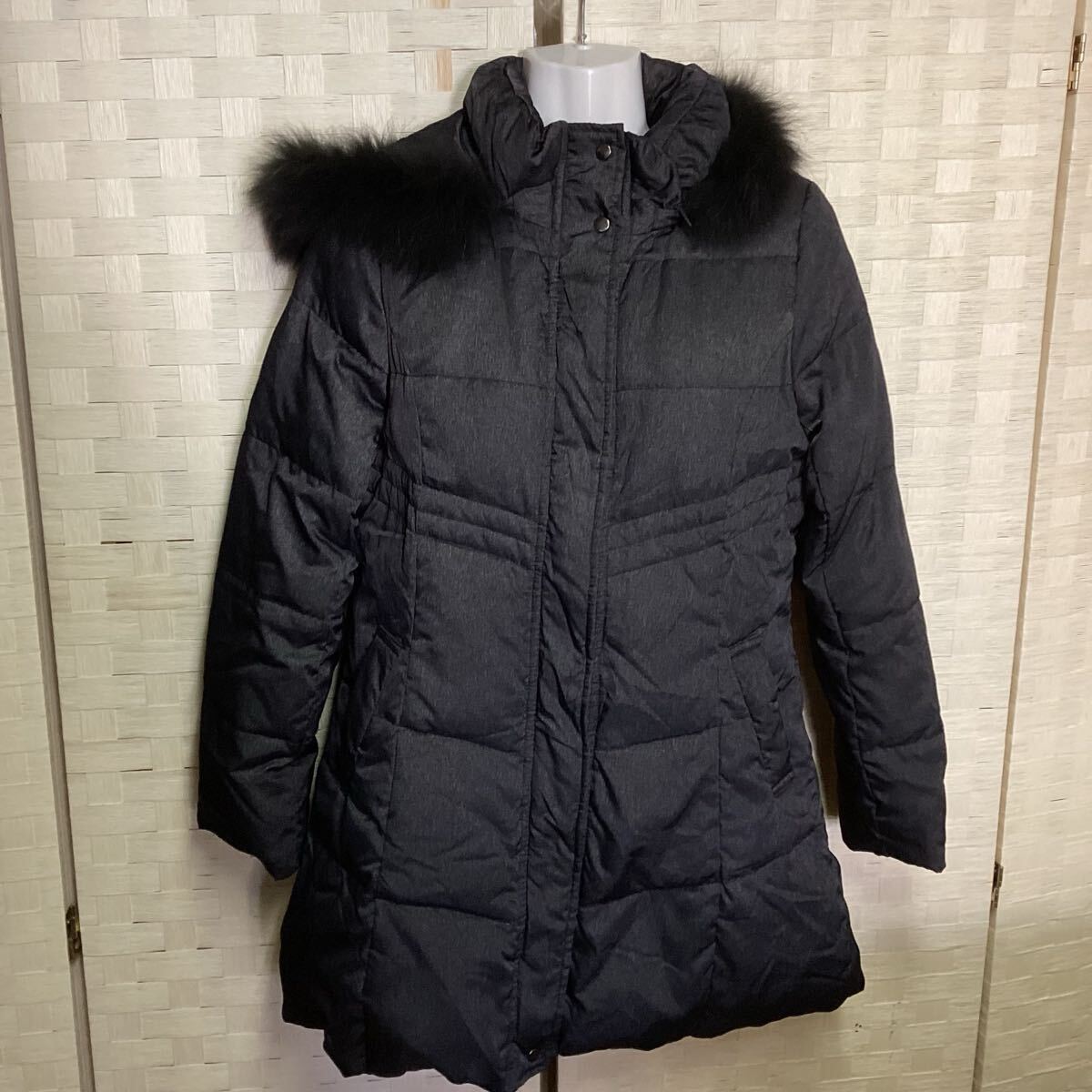 > レディース ダウン ロングコート ファー付き グレー Mサイズ (せ37)