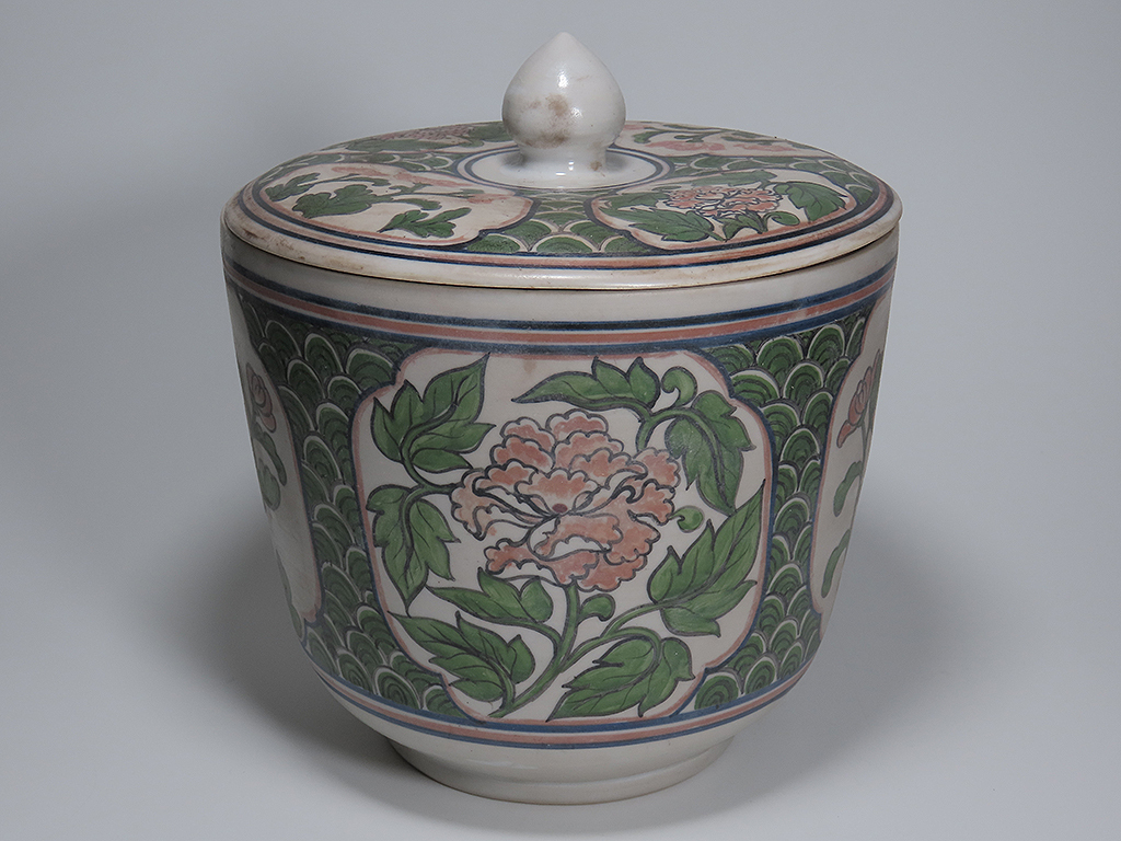 - 東南アジアの陶器.タイ/ベトナム.安南の蓋物.使用品.汚れや染みやふり物がありますが傷はありません。