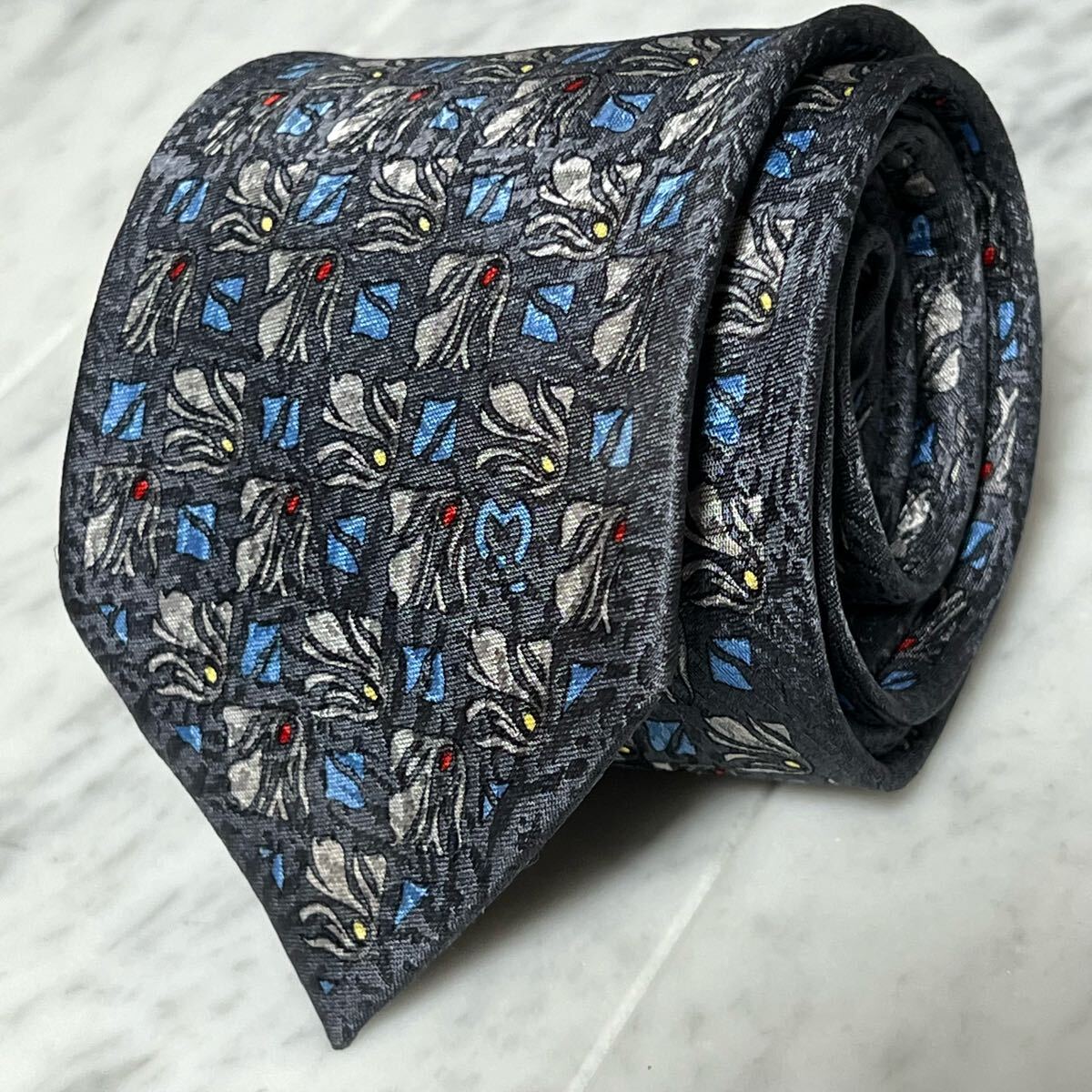 - 【美品】 999円~ ミラショーン ネクタイ グレー ワンポイントロゴ 総柄 (GB1)