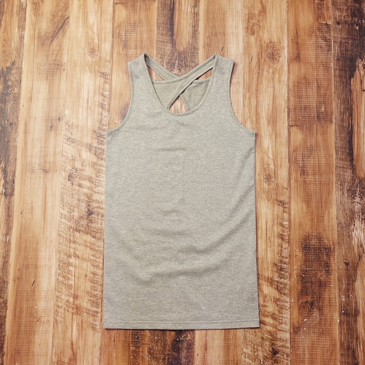 - 美品 イーブス YEVS クロスバックラメタンクトップ レディース ゴールド ストレッチ カジュアル フリーサイズ カーキゴールド LM35
