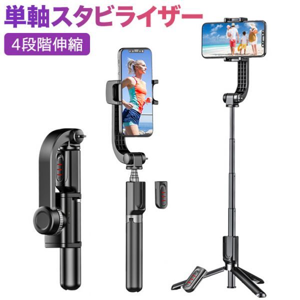 > 進化版スマホジンバル スタビライザー 片手持ち単軸スタビライザー 自撮り棒 4段階伸縮 多機能Bluetoothリモコン付き