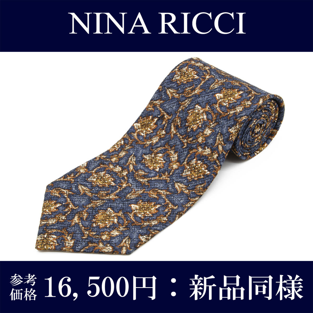 > 送料無料 ニナリッチ ネクタイ 新品同様 ワイドタイ シルク インディゴブルー オレンジ ビジネス カジュアル ブランド 珍しい 綺麗 N307