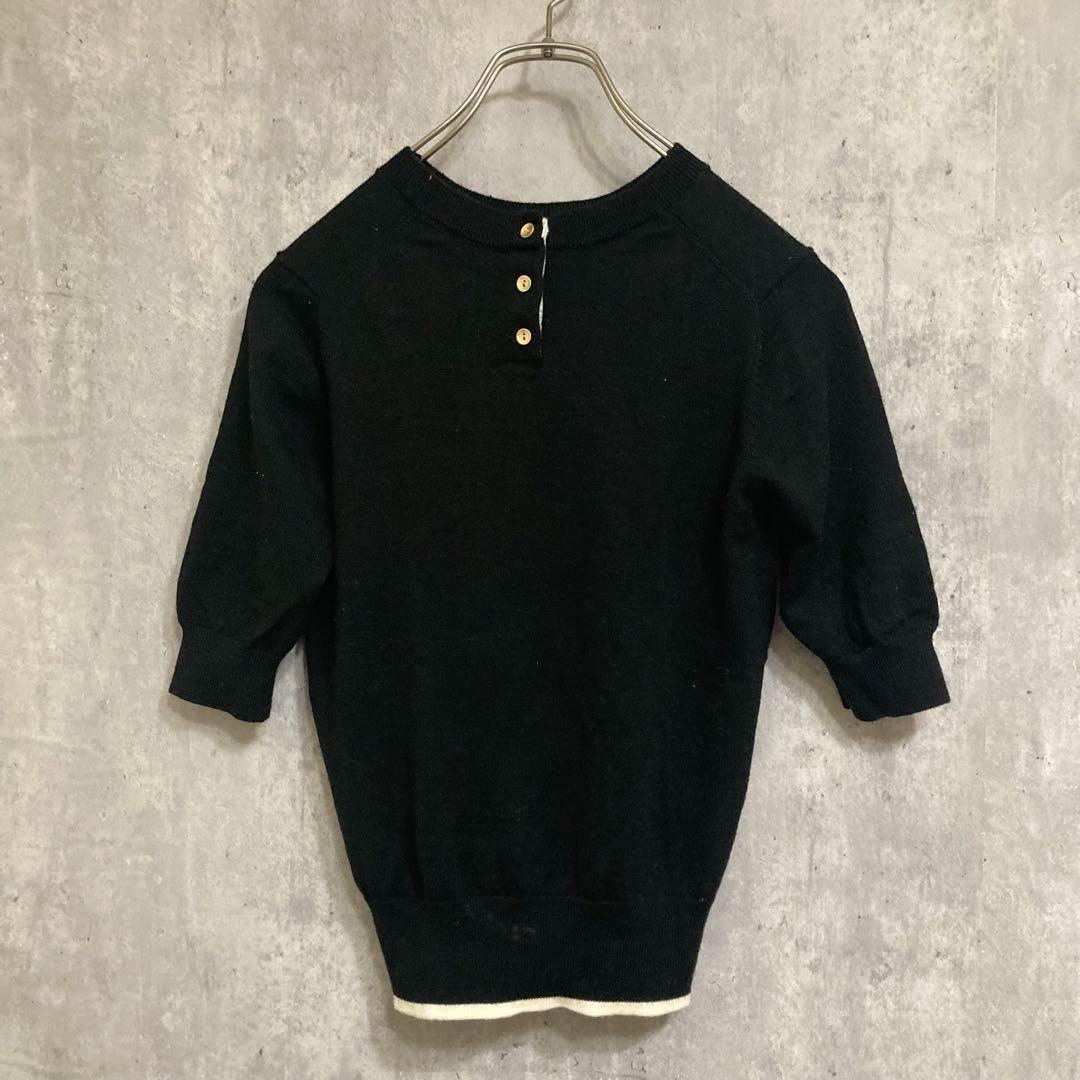 - オペークドットクリップ ニットトップス 38/M ブラック 丸首 半袖 古着