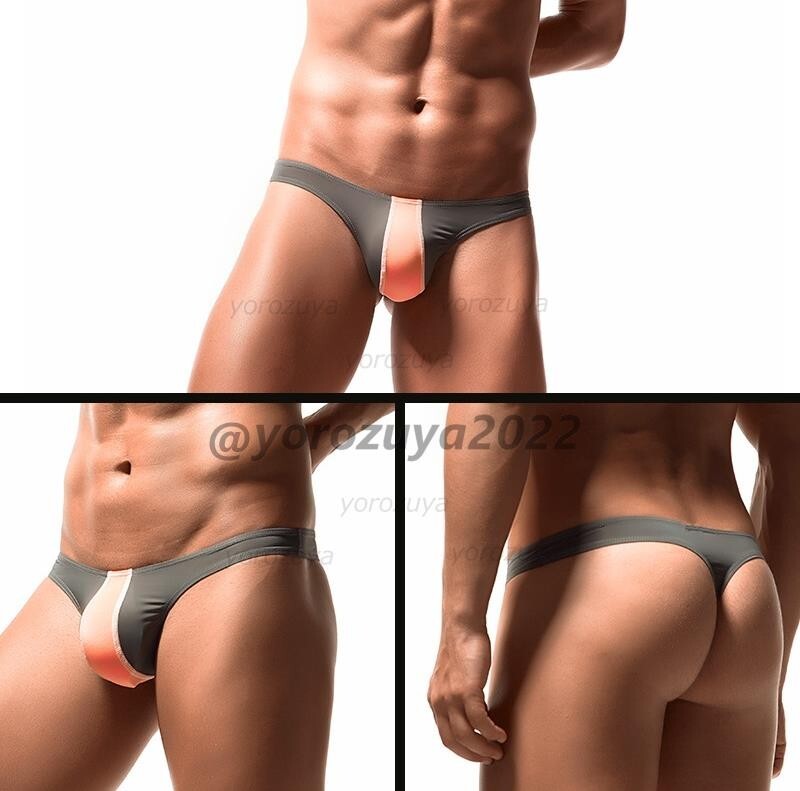- 165-17-6 セクシー ラインパンツ ナイロン シームレス Tバック【グレー,M】男性 メンズ 下着 ブリーフ Gストリング アンダーウェア.2