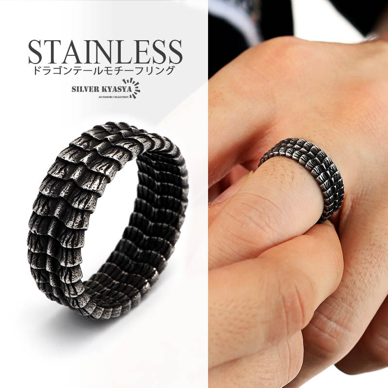 - (16号) ドラゴンテールリング 指輪 メンズ ブラック 燻し仕上げ 龍 竜 黒 ステンレス 金属アレルギー