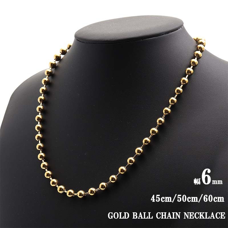 - (60cm) ボールチェーンネックレス ゴールド 18kgp 18金 ネックレス 6mm ボールチョーカー ラージボール