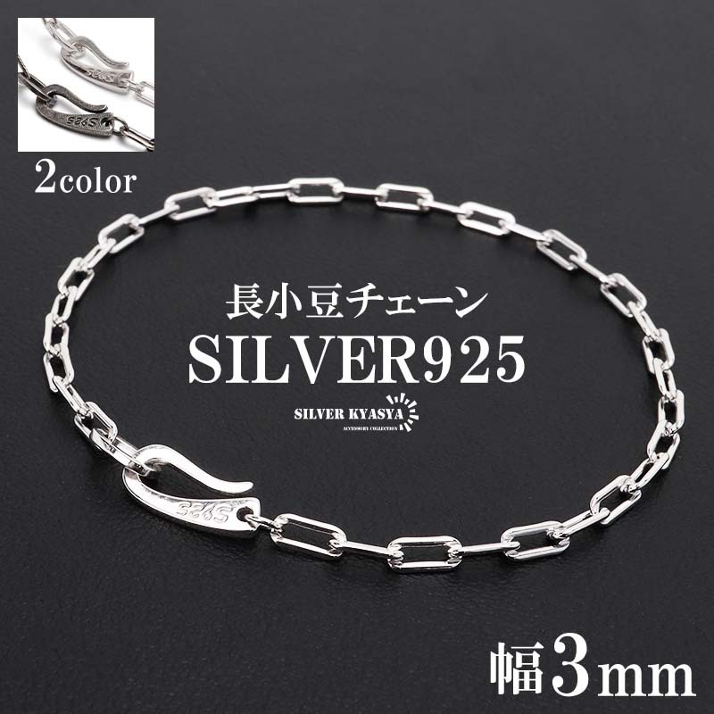 > (シルバー) 流行り 長小豆チェーンブレスレット 925 ロングあずきチェーンブレスレット 幅3mm シンプルブレスレット