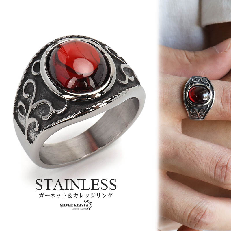 - (14号) 唐草リング シルバー カレッジリング ガーネットリング アラベスク メンズ指輪 vintage