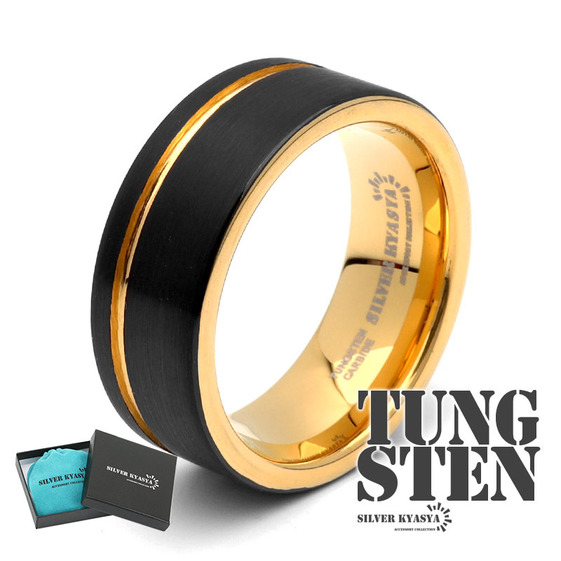 - (24号) タングステン ラインリング 指輪 リング ブラック ゴールド 金 黒 つや消し マット 専用BOX付属