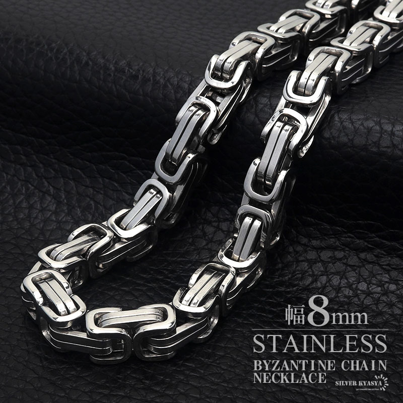 - (55cm) ステンレス ごつめチェーン ネックレス 幅8mmネックレス ビザンチンチェーン スクエア ごつい シルバー 銀