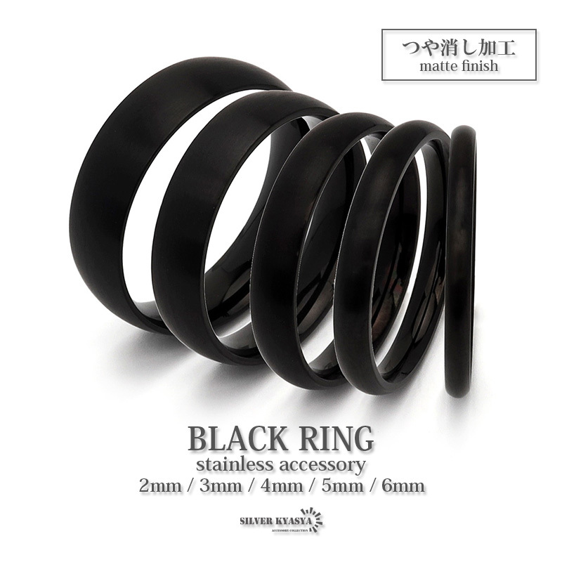- (3mm幅、9号) つや消し ブラックリング メンズ レディース ステンレスリング IP マット 指輪 金属アレルギー対応