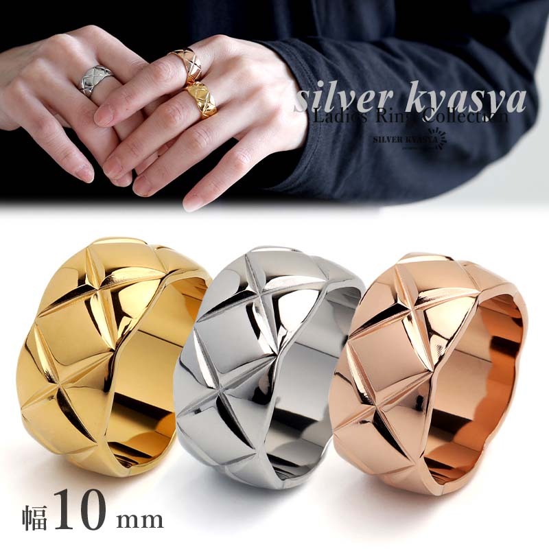 - (シルバー、14号) キルティングリング ゴールド シルバー K18 GP 金 ステンレス リング 指輪 ワイドリング