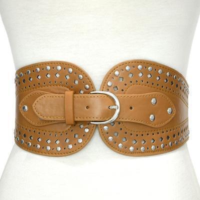 - 【ブラウン】スタッズ付 コルセットベルト パンチングベルト 太ベルト レディース