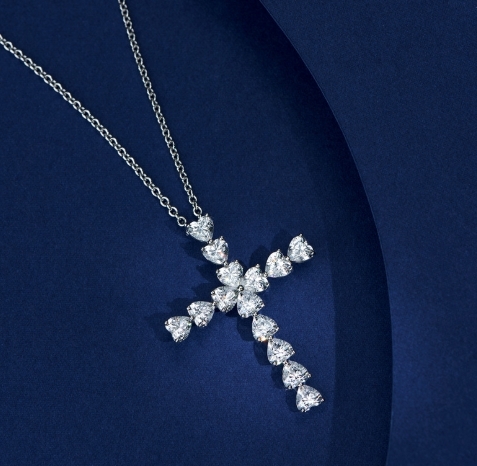 - クロスネックレス ハートシェイプ ネックレス 人工ダイヤモンド SONA