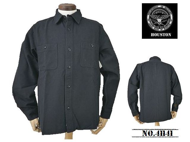 > 【送料無料 27%OFF】HOUSTON ヒューストン ヘビービエラ ソリッドカラーWORKシャツ NO.41141 BLACK_Lサイズ