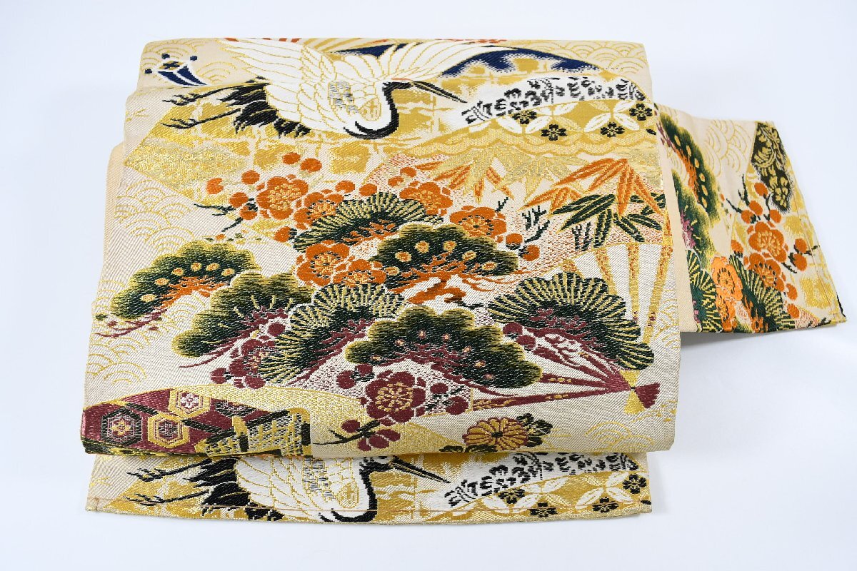 - 名古屋帯 アンティーク 鶴 花 松 帯丈334cm ★着物屋 ne-14076 桜庭呉服店