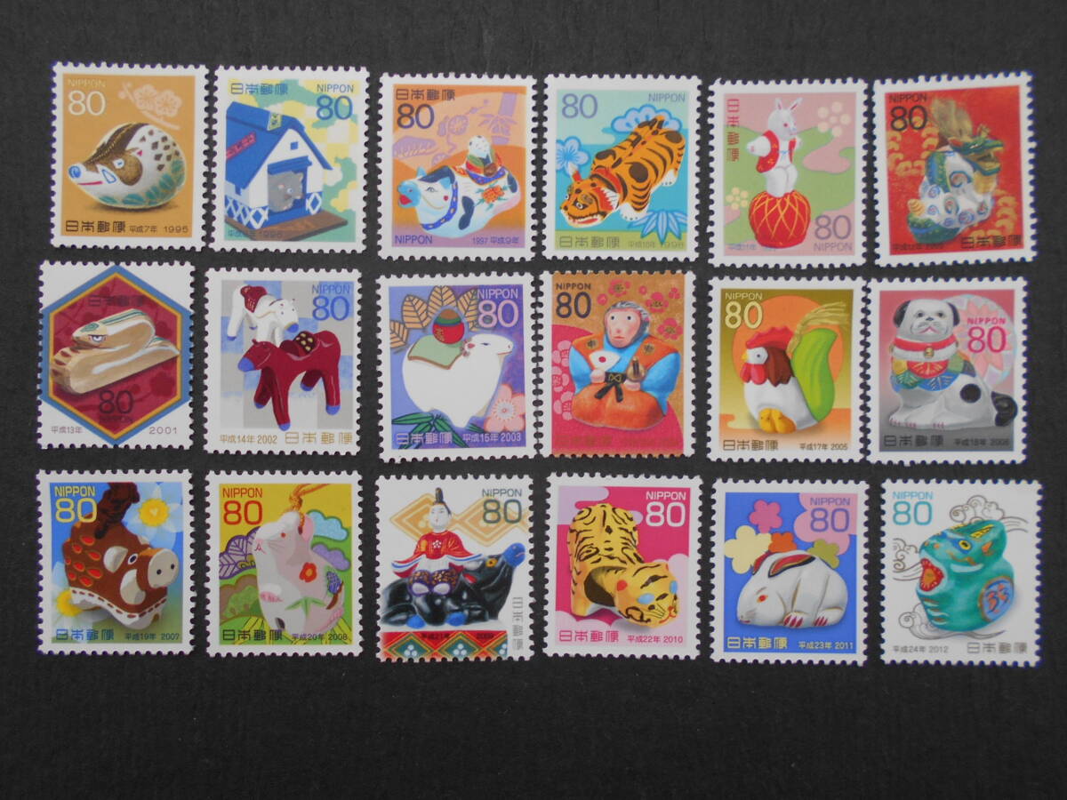 - 年賀切手1995~2012年 18年分80円切手揃い 未使用80円切手18種