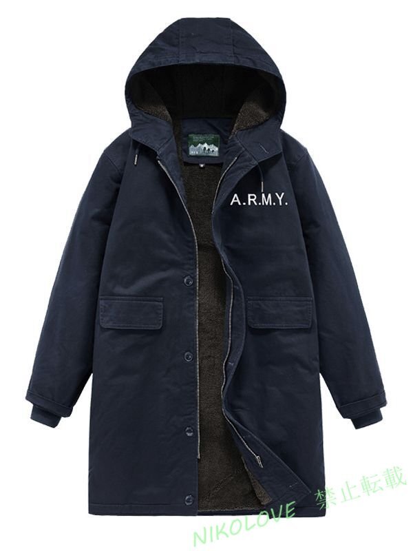 - ☆新品冬 ロングコート メンズ 裏ボア モッズコート フード付き 裏フリース ミリタリージャケット ヴィンテージ ネイビー XL~6XL LK201