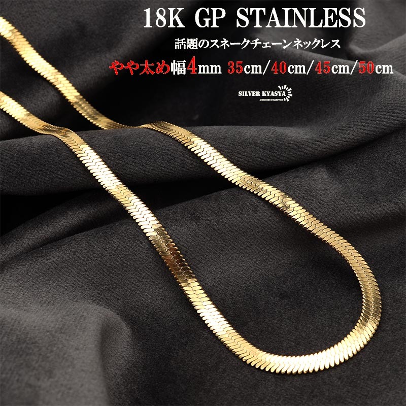 - (45cm) やや太め スネークチェーン 18k gp 金 ゴールド チェーンネックレス スネークチョーカー メタルチョーカー