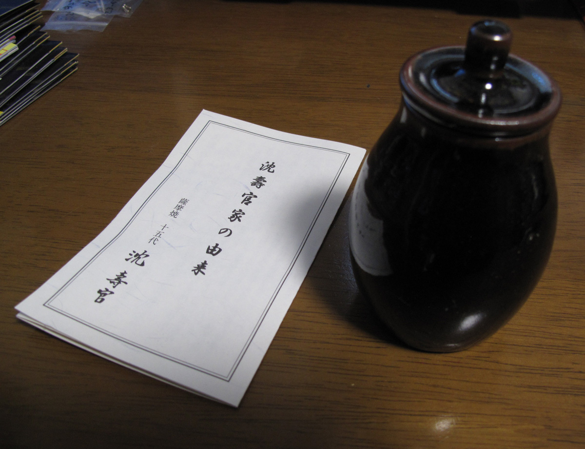 - 薩摩焼 十五代 沈壽官 の小さいツボ 高さ 10cm φ55mm
