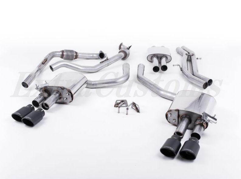 > MILLTEK キャタバックエキゾーストアウディS4 3.0 ターボ V6 B9 セダン&ワゴンresonated 4本出し Eマーク付き セラコートブラック オーバル