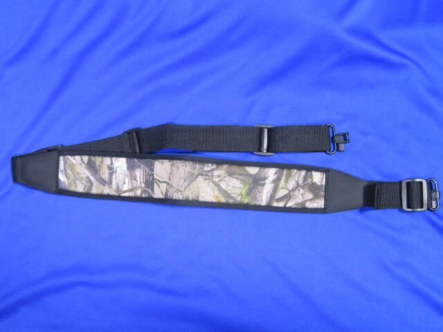 - 実銃用☆ネオプレーンスリング(リアル迷彩) スイベル2個付き 負革 (カモ) ソフトパッド 狩猟の必需品 散弾銃 ライフル 駆除 管理捕獲に