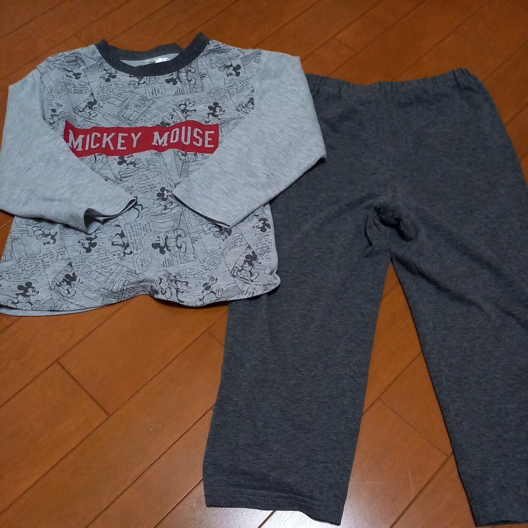 - パジャマ グレー 上下セット ミッキー ディズニー キッズ 子供 薄手 サイズ120 長袖 保育園 お着替用などに! 使用少なめ