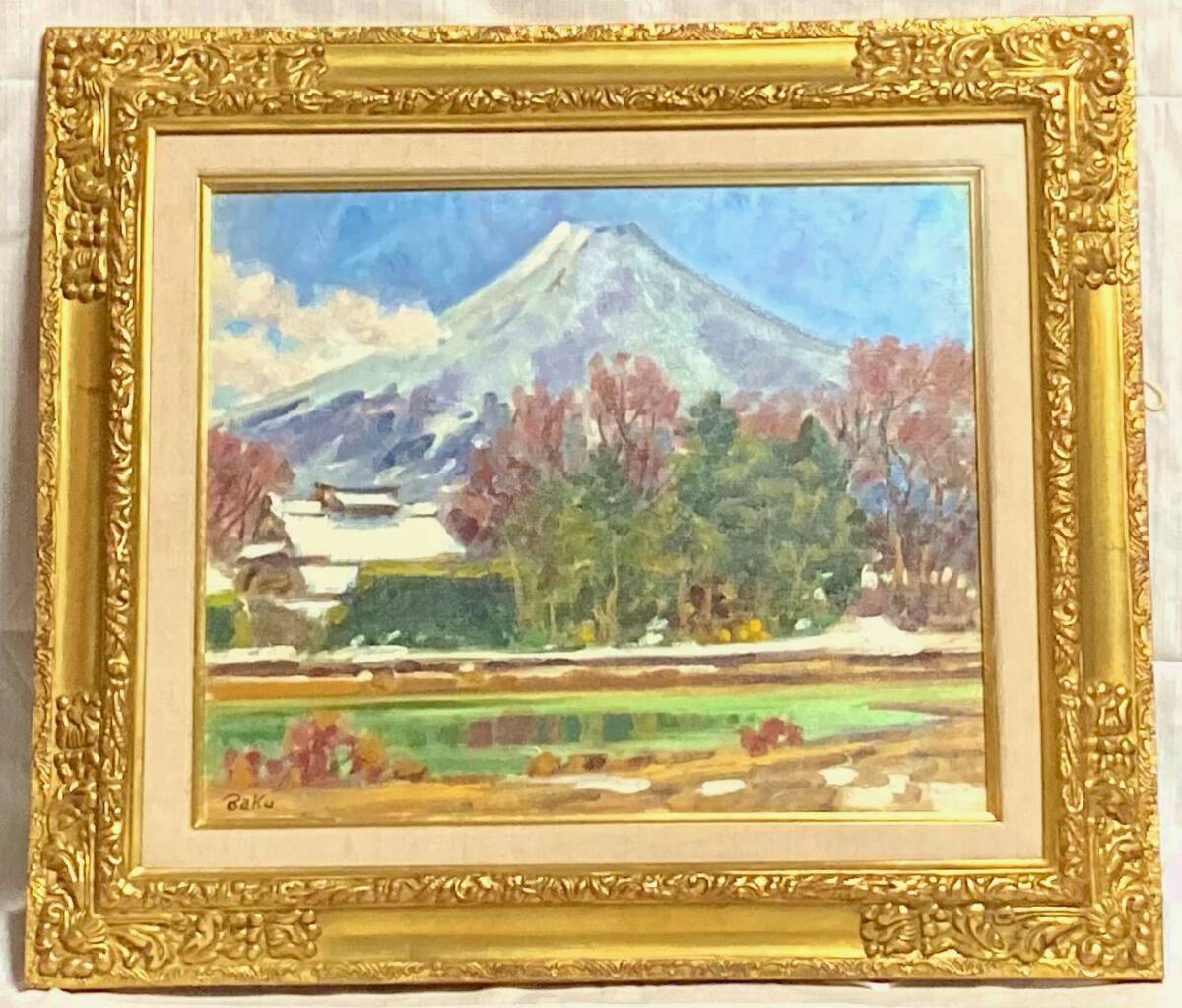 - 松浦莫章 (F8) 逆光の忍野より見た富士山 当時30万円弱「真作保証」忍野の残雪 油彩1979年制