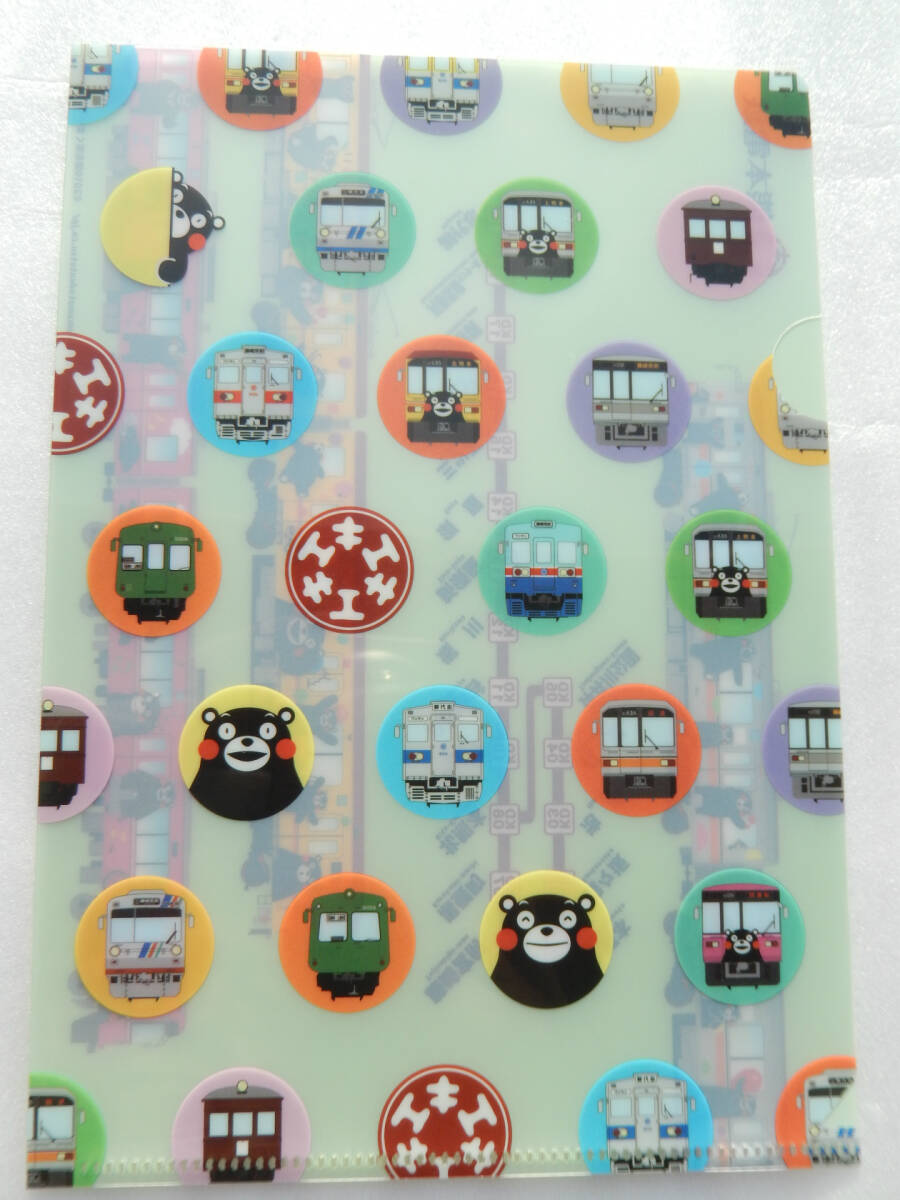 - 熊本鉄道《 車両 & くまモン & 路線図 デザイン A5サイズ クリアファイル 緑》☆★☆★☆ 鉄道 グッズ 列車 電車 キャラクター ゆるキャラ