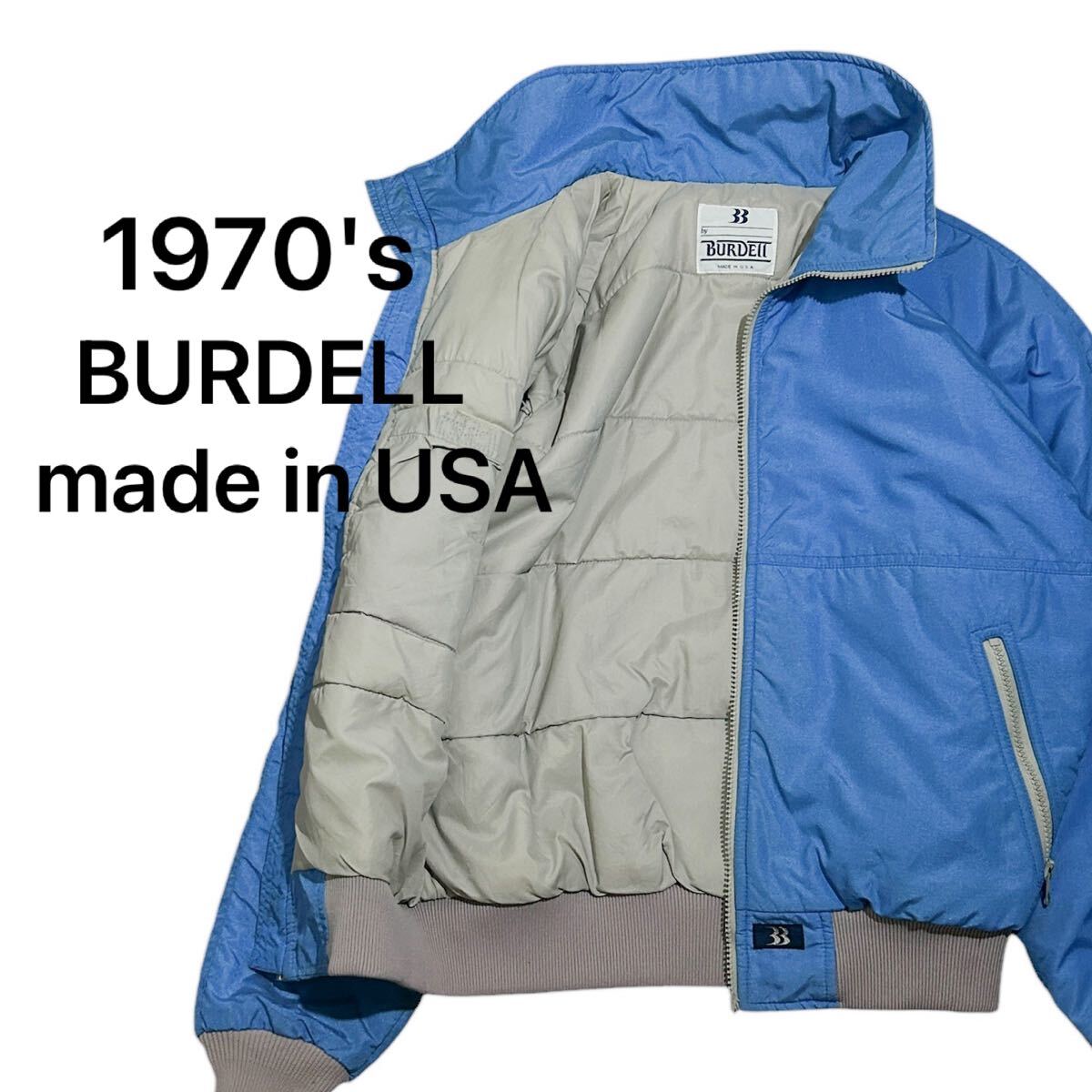 > USA製 1970's BURDELL ヴィンテージ シェル ジャケット パフ パフィ 中綿 ショート ダウン 水色 サックス プリーツ アウター アメリカ M