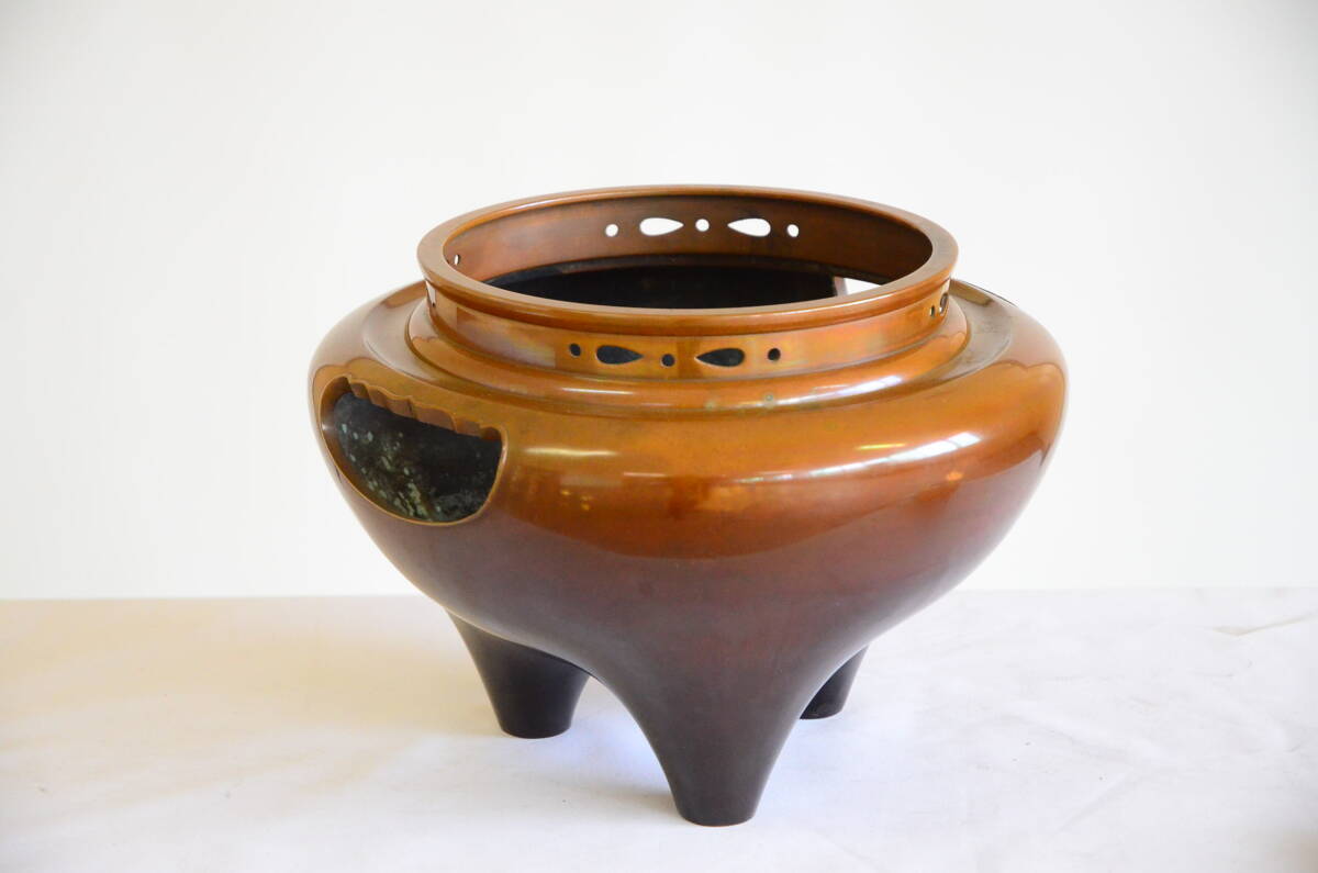 朝鮮釜 都色 銅製 茶釜 茶道具 縦21cm 横30cm 中古