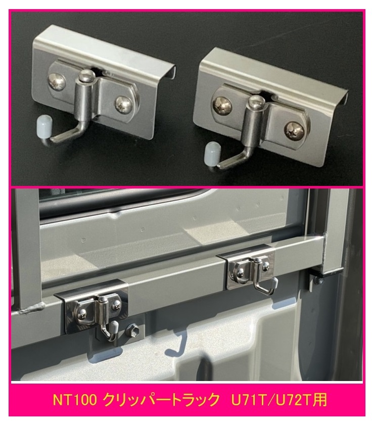 > ◎軽トラ 荷台鳥居(アングルポスト)用 便利アイテム 多目的ステンレスフック 2個SET NT100クリッパートラック U72T