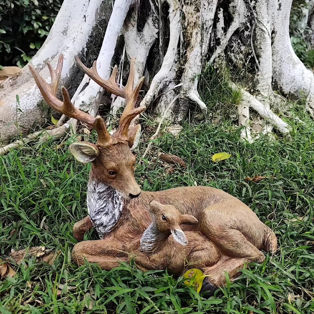 - 鹿 フィギュア 親子 リアル 置物 かわいい 37cm 樹脂像 ミニチュア インテリア エクステリア 庭 動物 レジン おしゃれ アニマル t4789
