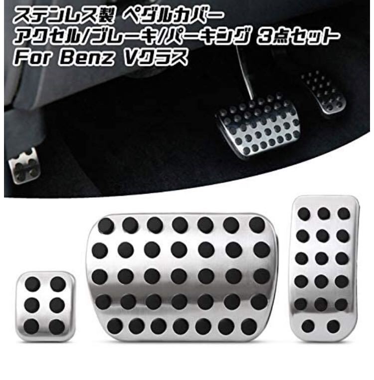 > ベンツ ステンレス製 ペダルカバー 3点セット アクセル/ブレーキ/パーキング Vクラス W447 W639 Viano ビアノ ペダル カバー