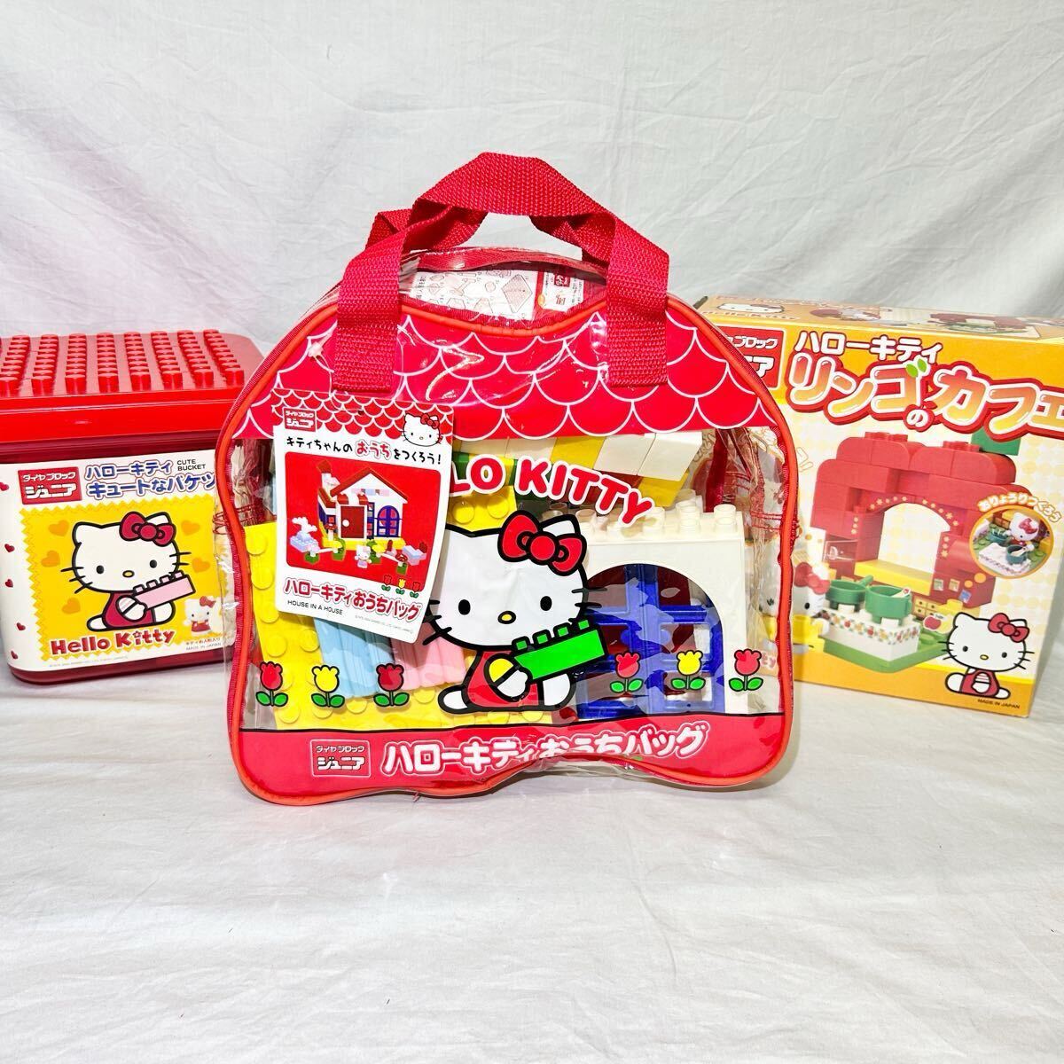 > サンリオ ハローキティ ダイヤブロック ジュニア レゴ ハローキティおうちバッグ キュートなバケツ リンゴのカフェ 知育玩具(02137D