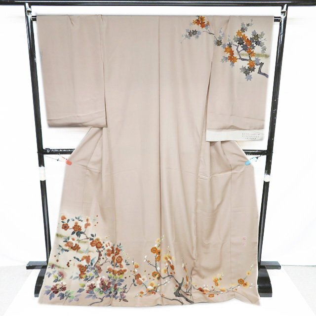 > 特選 訪問着 着物 未使用 未仕立て 仮絵羽 フォーマル 木村雨山画 古田芳彩 花の図 紅葉 梅 桜 牡丹 灰梅色 多色 金 きもの北條 A1148-11