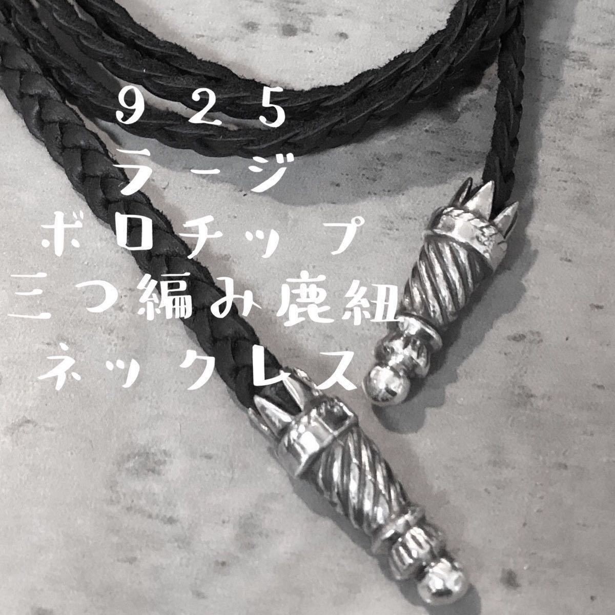 > シルバー925 ラージ ボロチップ レザーブレイド 三つ編み 鹿紐 カスタム パーツ エンドパーツ L ラージボロ 925 ディアスキン Sterling