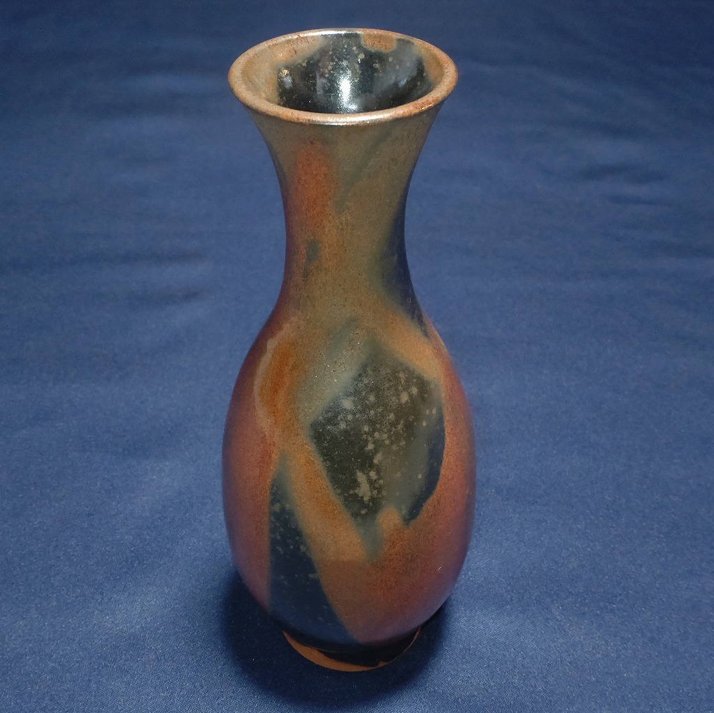 - 鐡赤釉 花瓶 正次 直径約90㎜ 高さ約230㎜ 陶器 焼き物 花びん カビン かびん 花刺し 一輪挿し 共箱 【0214】【b】【r】