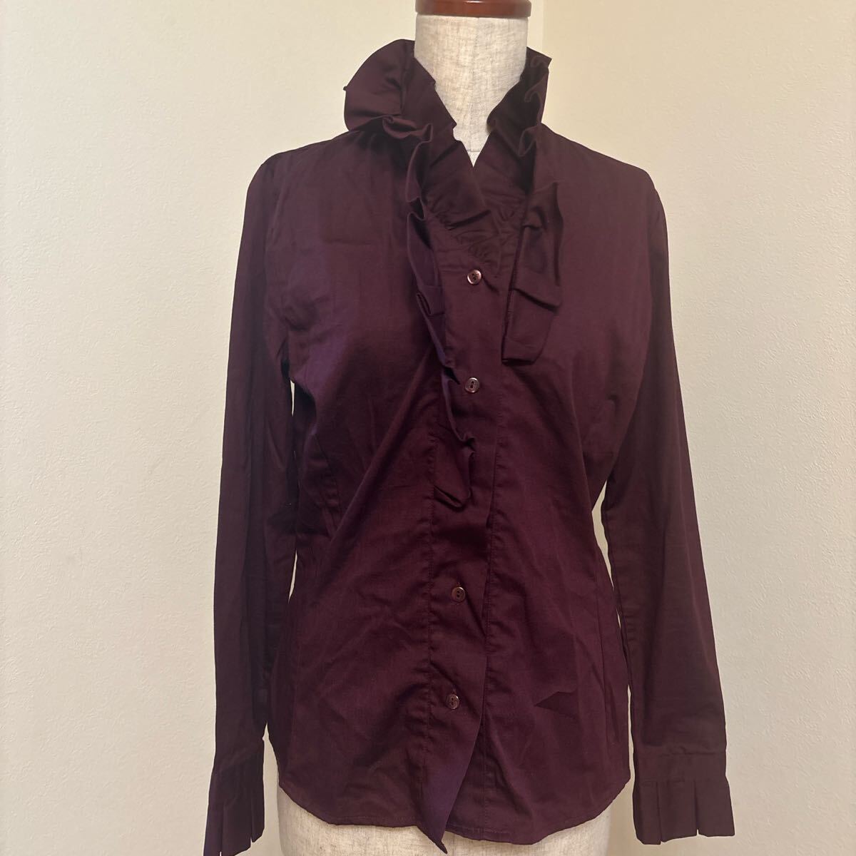 - ☆ ナラカミーチェ シックなボルドー色 立体フリル大人ブラウスフリル付き長袖 M 長袖 無地