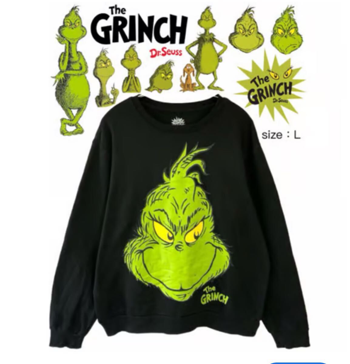 > 未使用新品USA限定GRINCH☆Dr.Seuss☆The Cat in the Hat☆グリンチ☆サンタクロース☆ドクター・スース、防寒 大人用Tシャツ長袖Lプリント