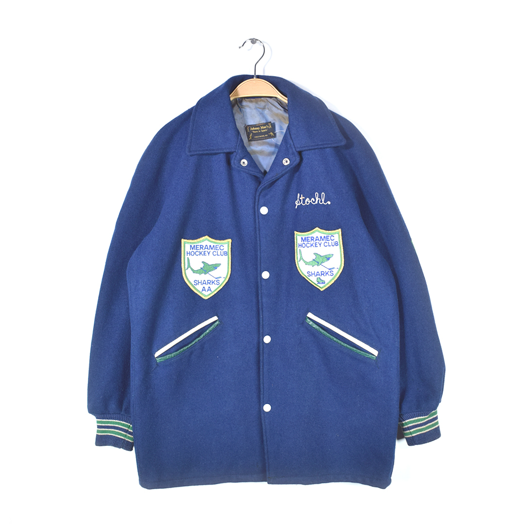 - 【送料無料】70s JOHNNY MAC'S ヴィンテージスタジアムジャンパー ロングスタジャン ウール ワッペン チェーンステッチ刺 L相当 @DZ0680