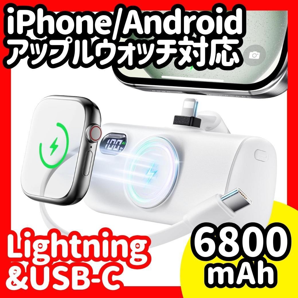 > モバイルバッテリー 軽量 3台同時 iPhone / Android 6800mAh 急速 充電 6800mAh Lightning&USB-C スマホ充電器 携帯充電器 コンパクト