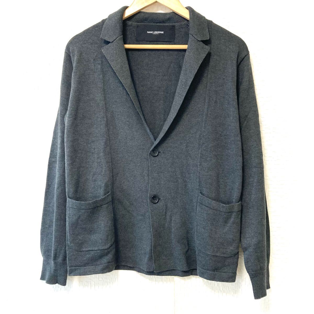 > 美品◎ 清潔感ある大人カジュアル!【nano universe】ナノユニバース ショールカラー ニット カーディガン 無地 グレー メンズ S/Y25842UU