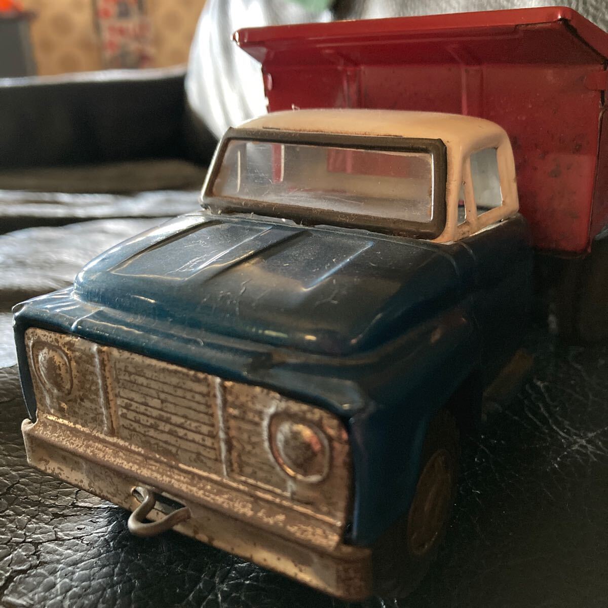 > ビンテージ アサヒ玩具 日本製ブリキ当時物☆ダンプトラック1960年代大型23㎝ FordフォードF800マルサン タイヨー 増田屋 アサヒ マッコイ