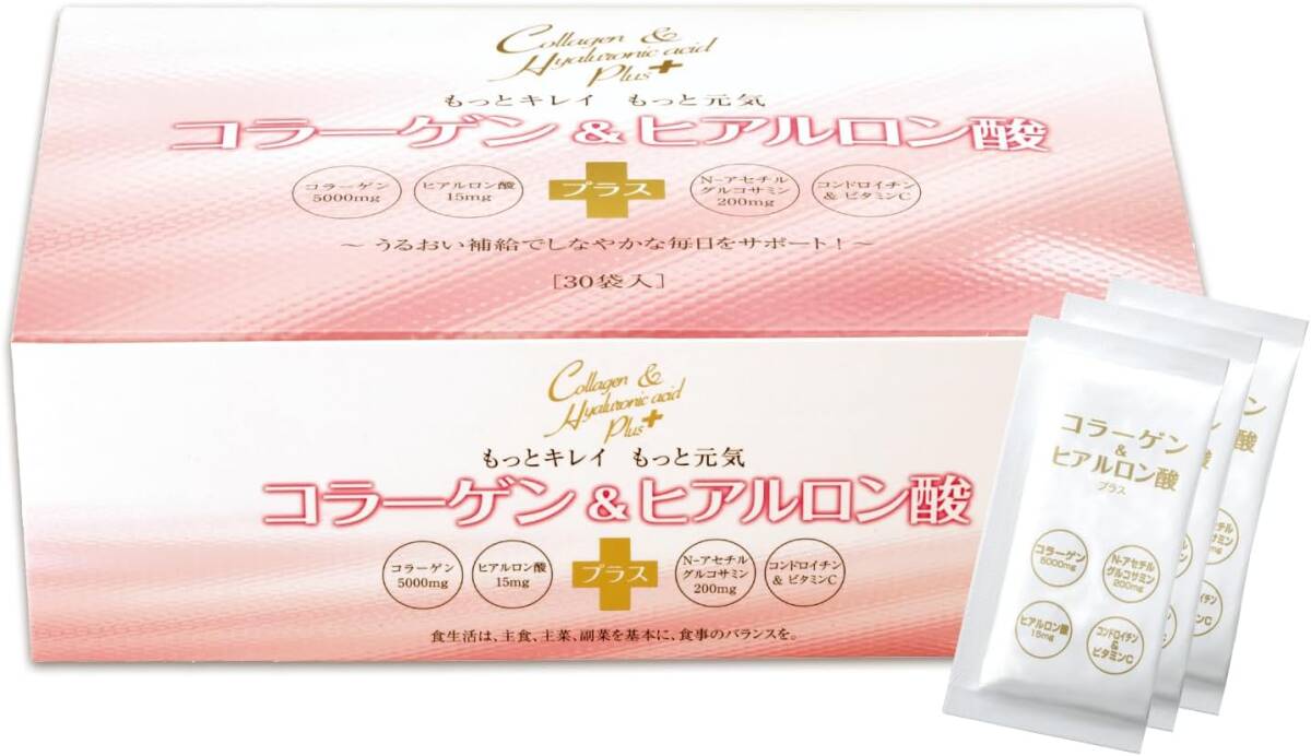 - 薬日堂 コラーゲン&ヒアルロン酸プラス 30袋 (約30日分) コラーゲンペプチド5,000mg N-アセチルグルコサミン200mg配合 分包 国内製造