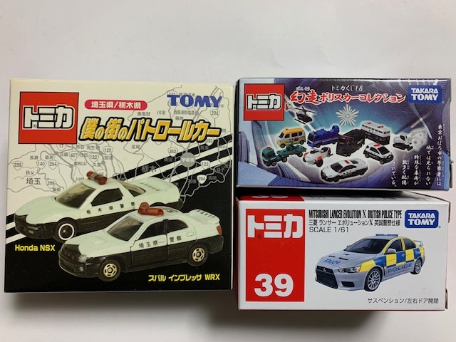 - 当時物 2014年頃 トミー トミカ 絶版品 警察車両 3点セット 埼玉県/栃木県 僕の街のパトロールカー 幻走ポリスカー 三菱ランエボX 英国警察